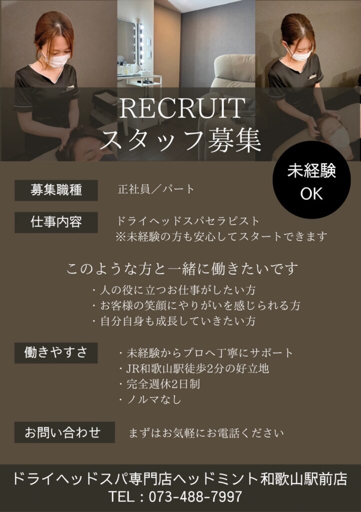 ドライヘッドスパ専門店 HEAD MINT 和歌山駅前店<Change Up株式会社>の採用・求人情報